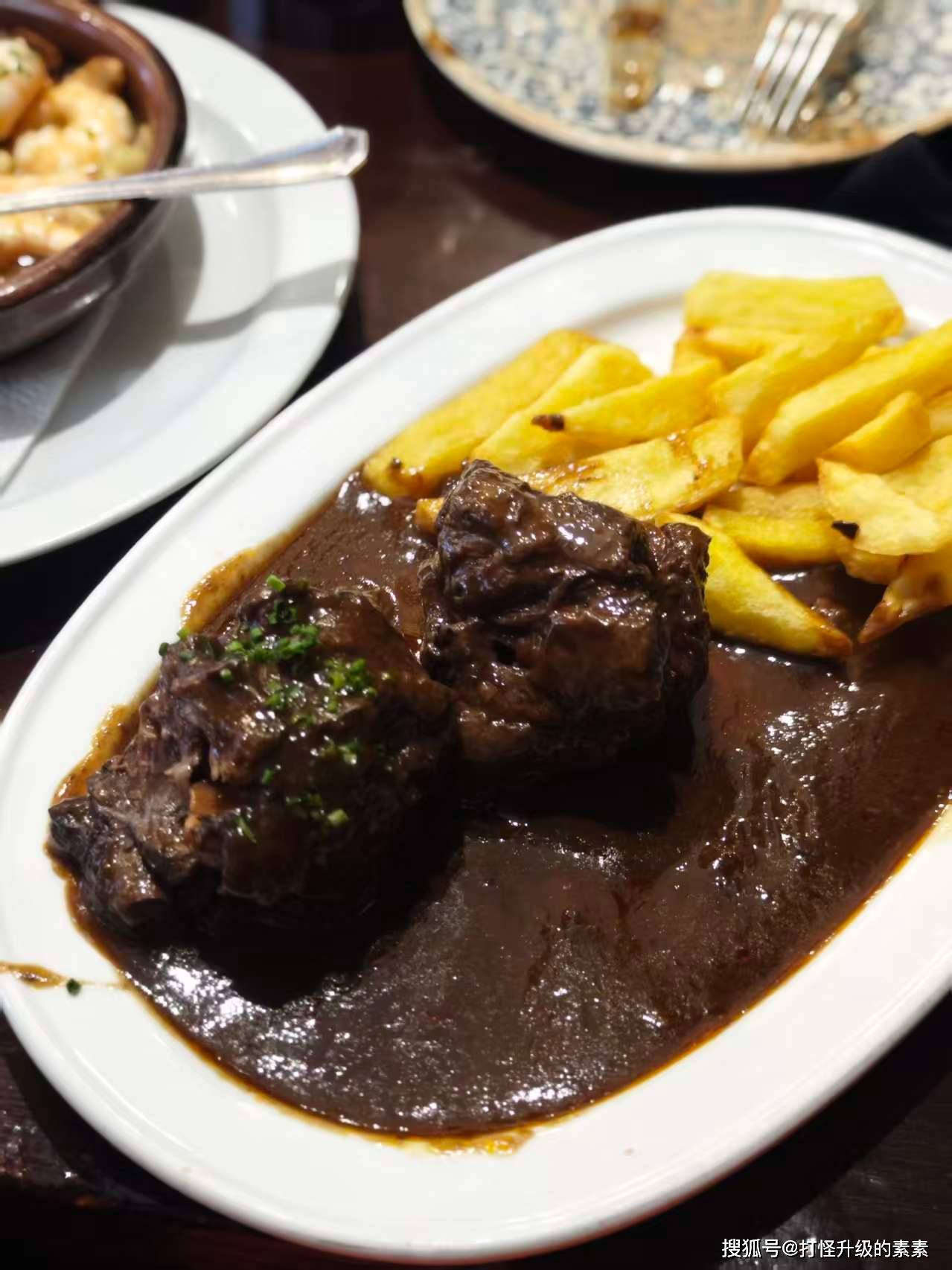 牛尾很软烂,旁边搭配的原味薯角,蘸酱汁吃一绝。