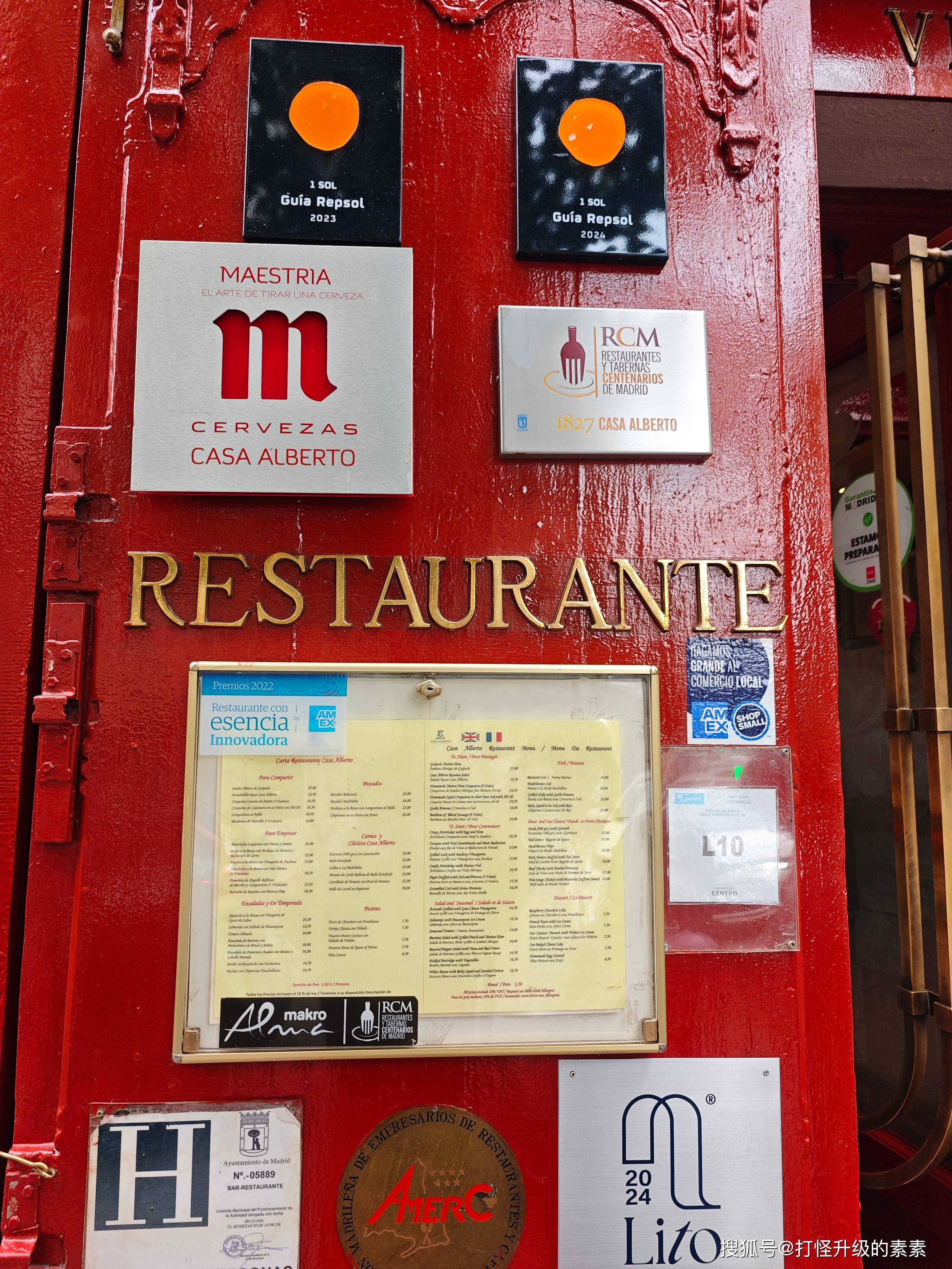 门口有类似国内大众点评、黑珍珠这种餐馆推荐榜给的荣誉证明。